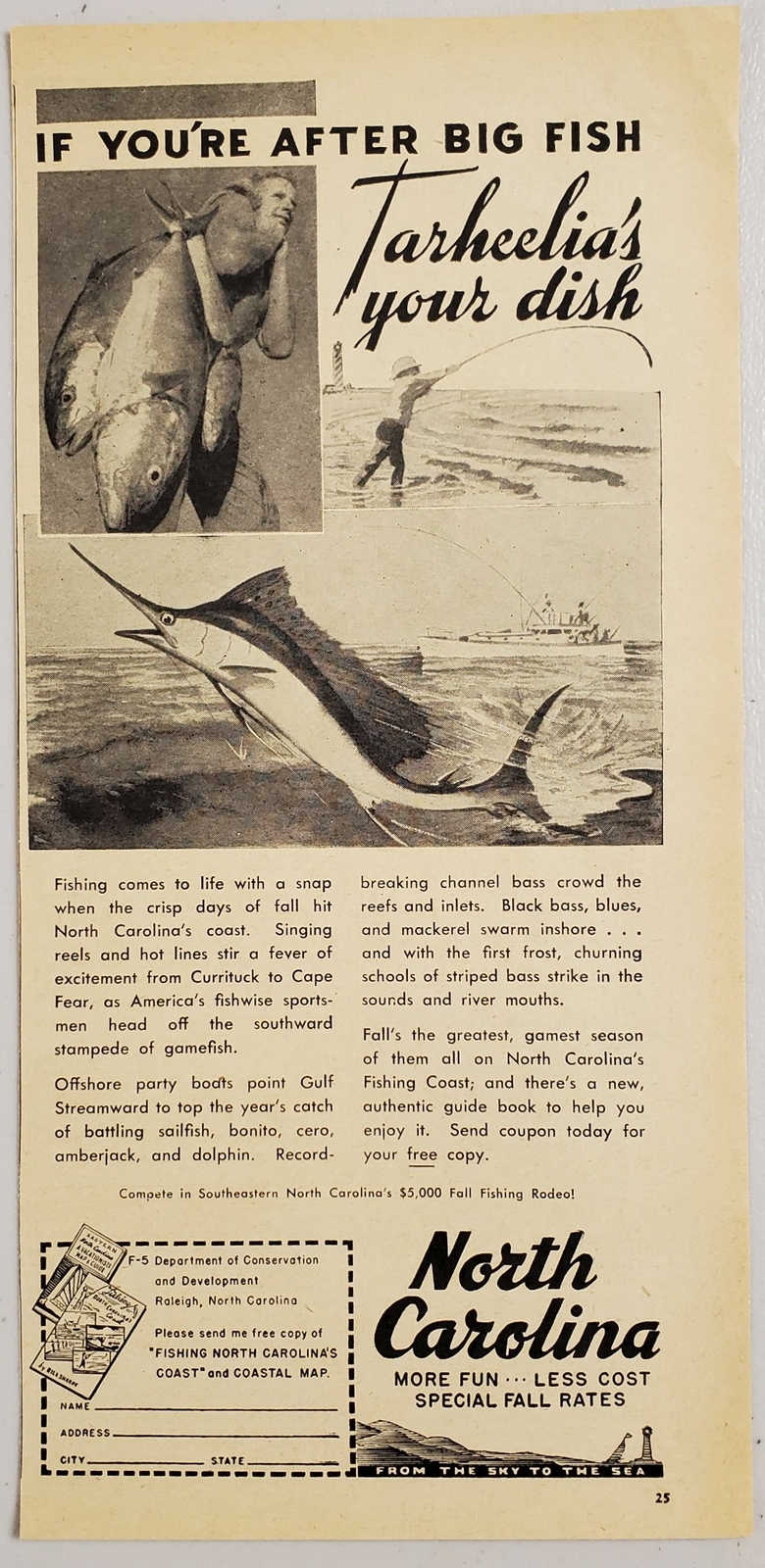 1948 Print Ad North Carolina Department Of Conservation Coastal Fishing Ebay
